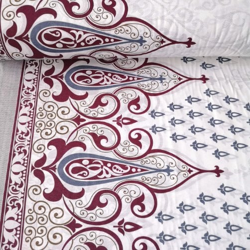 Poplin Kumaş renk ve desen çeşitleri Kumaş Home’da! Poplin Kumaş taksit seçenekleri ve sipariş için tıklayınız. Bordo Osmanlı Deseni Polycotton Poplin Kumaş Özellikleri. Polycotton Poplin Kumaş %70 pamukludur. Kumaş eni:240 cm’dir. Ev tekstili ve bebek ürünleri için uygundur.