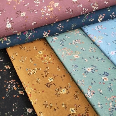 Buket Çiçekler Desenli Şifon, gece elbisesi, nişan elbisesi gibi özel gün kıyafetlerinde tercih edilen, parlak bir kumaştır. Uçuşan yapısı yanında iç gösteren özelliği nedeniyle astarsız kullanımı mümkün olmamaktadır.