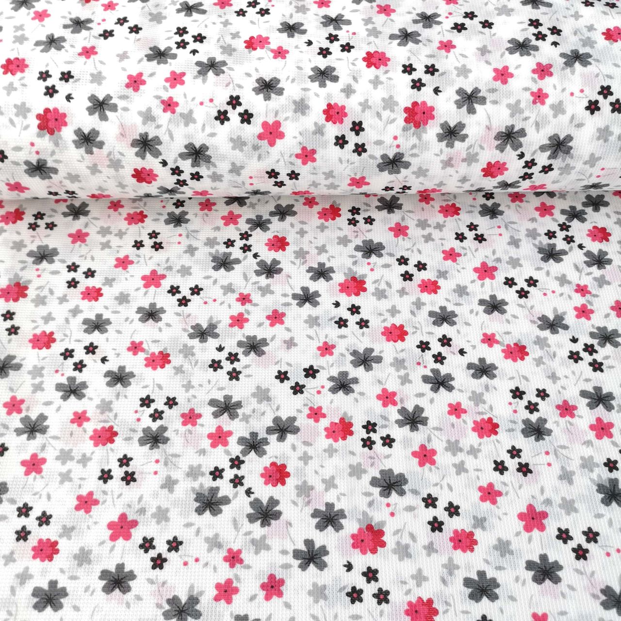Gri Minik Çiçekli Raşel Kumaş