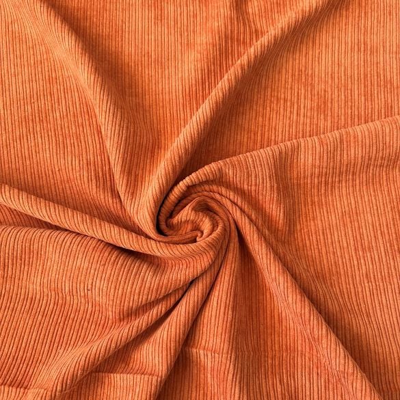 Turuncu Kalın Fitilli Kadife Kumaş % 100 pamuktur. Nostaljik görselliğiyle ev dekorasyonunuzda da farklı hava katabilecek üründür. Giyim parçalarınızın tasarımlarında da kullanabilirsiniz.